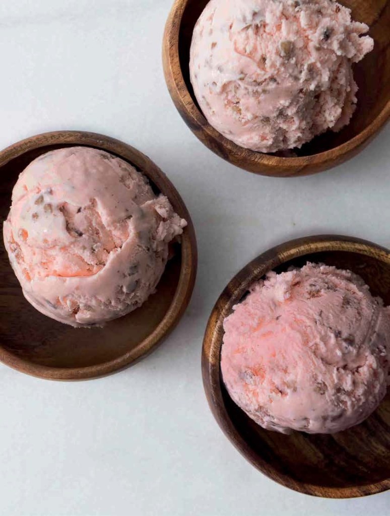 While it’s mainly the sound of the metal tea kettle closing shut after the chai is made and the aroma of mustard seeds frying (“It’s the distinct smell of typical, everyday cooking that gets me excited about what I am about to devour….”) that remind Bavishi about India, all her ice creams come from memory. “I mostly pull something nostalgic from my childhood or upbringing, and recreate that in ice cream form. I know exactly what I would love to see in ice cream flavours. A great example is the toasted nutmeg. My family always makes kheer around Diwali time, and flavours it with nutmeg. I knew that I wanted that same flavour in ice cream, and made something from a spice that is common, but likely not found in ice creams. It’s actually quite wonderful to see someone taste something that I’ve created from my memories, and them having their own associations or reference points when they taste it,” explains Bavishi.